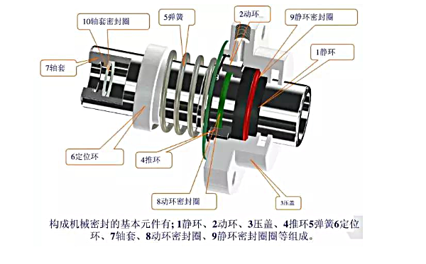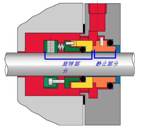 機(jī)封由旋轉(zhuǎn)部件和靜止部件兩部分組成(見下圖),靜環(huán)面成為密封的主密封面。