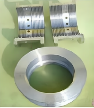 曲折式迷宮密封也分全體和鑲嵌兩種結(jié)構(gòu),特點(diǎn)是密封齒的伸出高度不一樣,而且高低齒相間擺放,與之相配的軸表面,是特制的凹凸溝槽,這種高低齒與凹凸槽相配合的結(jié)構(gòu),使平滑的密封間隙變成了曲折式,因此,增加了流動阻力,提高了密封效果。缺點(diǎn)是只能用在有水平剖分面的缸體或隔板中,而且密封體也要做成水平剖分型。