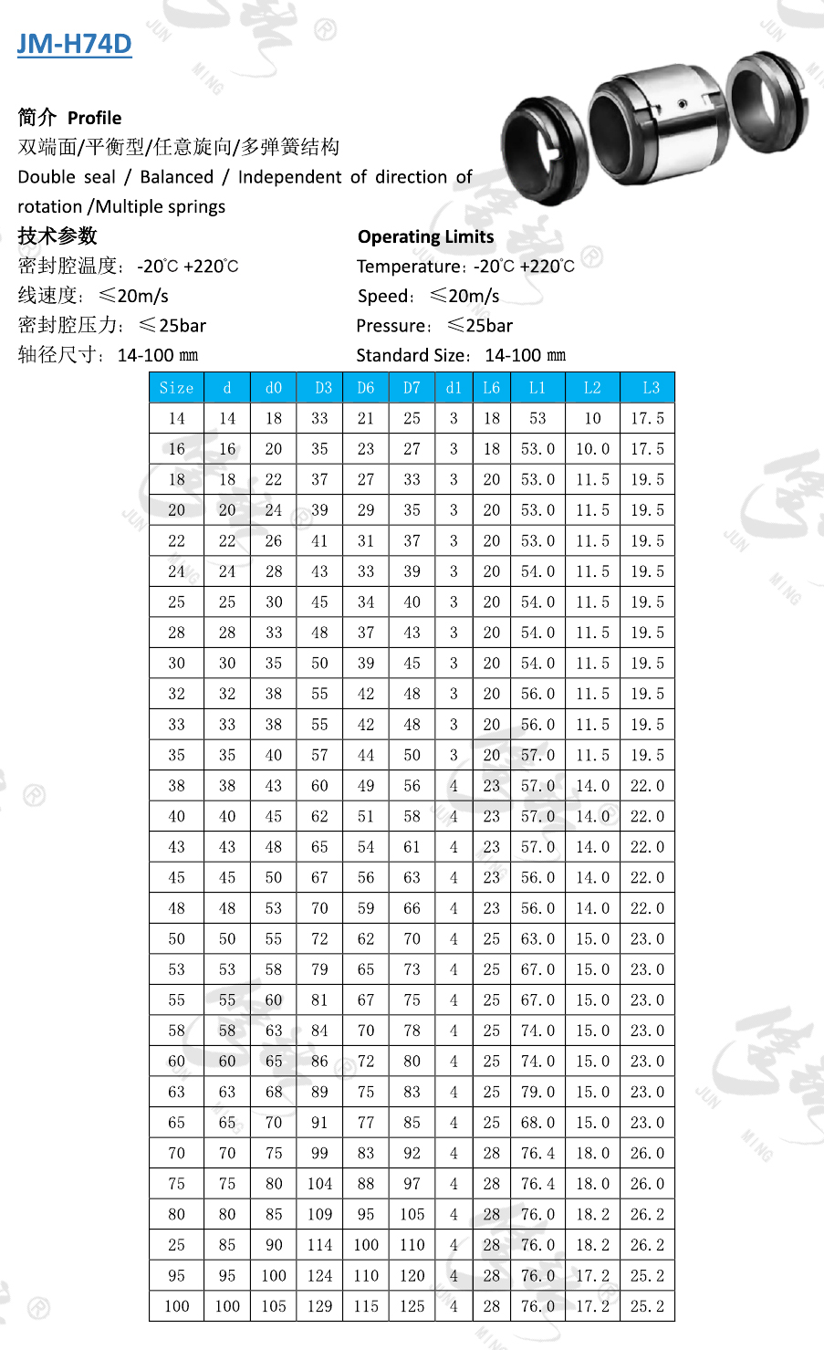 雙端面/平衡型/任意旋向/多彈簧結(jié)構(gòu)